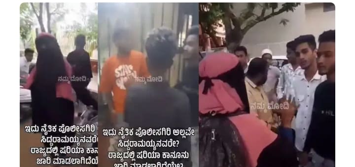 ಕಾಲೇಜು ಯುವತಿ ತನ್ನ ಗೆಳೆಯನ ಬೈಕ್ ಮೇಲೆ ಕುಳಿತಿದ್ದು, ಅಲ್ಲಿಗೆ ಬಂದ ಗ್ಯಾಂಗ್, ಕಾಲೇಜಿಗೆ ಹೋಗೋದು ಬಿಟ್ಟು ಇಲ್ಲಿ ಕೂತಿದ್ಯ, ನಿನ್ನ ಅಪ್ಪ ಅಮ್ಮನ ನಂಬರ್ ಕೊಡು, ಮುಸ್ಲಿಂ ಆಗಿ ಈ ರೀತಿ ಮಾಡ್ತಿದ್ದಯಾ, ಎಂದೆಲ್ಲಾ ಹೇಳಿ ಕಿರಿಕ್ ಮಾಡಿದ್ದಾರೆ. ಯುವತಿಯ ಜೊತೆ ಇದ್ದ ಯುವಕನಿಗೂ ಬೈದು, ಹಲ್ಲೆ ಮಾಡಿದ್ದಾರೆ. ಇದರ ವಿಡಿಯೋ ಸೋಷಿಯಲ್ ಮೀಡಿಯಾದಲ್ಲಿ ವೈರಲ್ ಆಗಿದೆ.