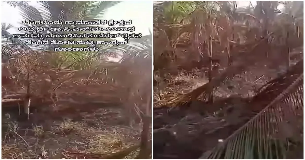Bengaluru Rural : ಬಿಜೆಪಿ ಅಭ್ಯರ್ಥಿ ಡಾ. ಮಂಜುನಾಥ್’ಗೆ ಬೆಂಬಲ ನೀಡಿದ್ದಕ್ಕೆ ತೆಂಗಿನ ತೋಟಕ್ಕೆ ಬೆಂಕಿ ಇಟ್ಟ ಪಾಪಿಗಳು – ಮುಗಿಲು ಮುಟ್ಟಿದ ರೈತನ ಗೋಳು !!