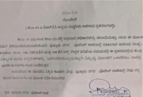 Putturu Arun Kumar Puttila: ಸೌಜನ್ಯ ನ್ಯಾಯಕ್ಕಾಗಿ ಪುತ್ತೂರಿನಲ್ಲಿ ಪುತ್ತಿಲ ಪರಿವಾರದ ವತಿಯಿಂದ ಜರುಗಿದ ಪ್ರತಿಭಟನೆಗೆ ಕೇಸ್‌ ದಾಖಲಾಗಿರುವ ಕುರಿತು ವರದಿಯಾಗಿದೆ. ಹಾಗೂ ಈ ಕುರಿತು ಅರುಣ್‌ ಕುಮಾರ್‌ ಪುತ್ತಿಲ ಸೇರಿ ಐವರಿಗೆ ನೋಟಿಸ್‌ ಜಾರಿ ಮಾಡಲಾಗಿದೆ.