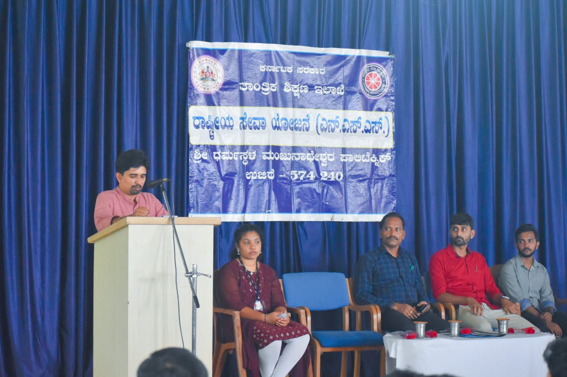 ಶ್ರೀ ಧರ್ಮಸ್ಥಳ ಮಂಜನಾಥೇಶ್ವರ ಪಾಲಿಟೆಕ್ನಿಕ್ ಕಾಲೇಜಿನ ರಾಷ್ಟ್ರೀಯ ಸೇವಾ ಯೋಜನೆಯ ಘಟಕದ 2021-22ನೇ ಸಾಲಿನ ವಾರ್ಷಿಕ ಚಟವಟಿಕೆಗಳಿಗೆ ಕಾಲೇಜಿನ ಪ್ರಾಂಶುಪಾಲರಾದ ಶ್ರೀ ಸಂತೋಷ್ ಇವರು ಚಾಲನೆ ನೀಡಿ ಶುಭ ಹಾರೈಸಿದರು.