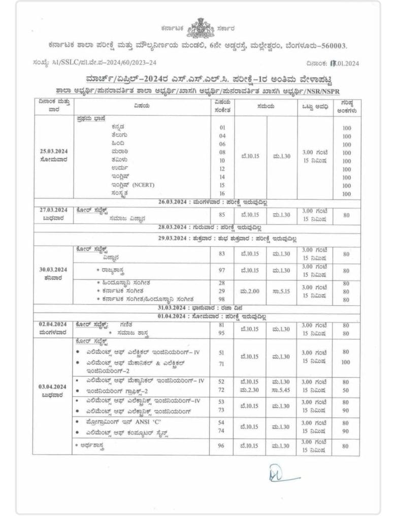 25-03-2024 ರ ಸೋಮವಾರ ಪ್ರಥಮ ಭಾಷೆ ಪರೀಕ್ಷೆ ನಡೆಯಲಿದೆ. ಕನ್ನಡ,ತೆಲುಗು ,ಹಿಂದಿ,ಮರಾಠಿ, ತಮಿಳು,ಉರ್ದು,ಇಂಗ್ಲಿಷ್, +ಇಂಗ್ಲಿಷ್NCERT)