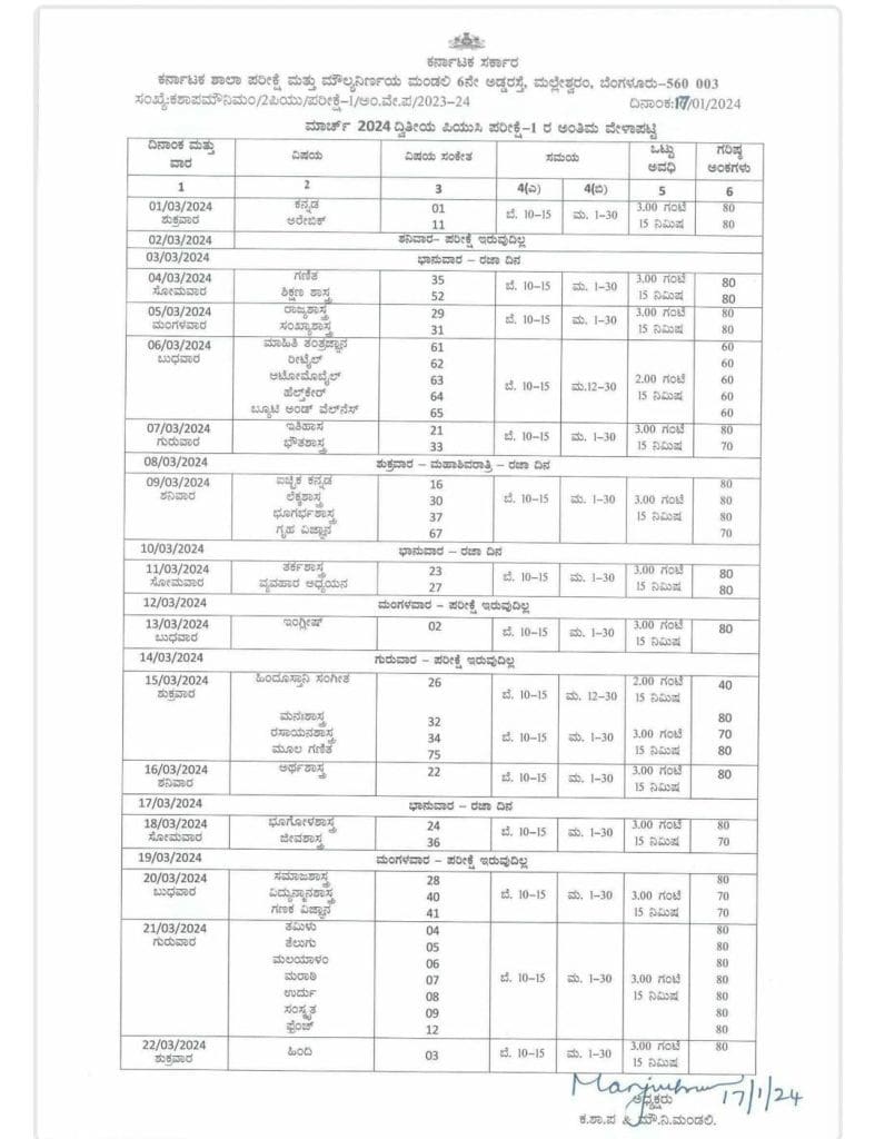 30-03-2024 ರಂದು ,ವಿಜ್ಞಾನ ,ರಾಜ್ಯಶಾಸ್ತ್ರ, ಪರೀಕ್ಷೆ ನಡೆಯಲಿದೆ.