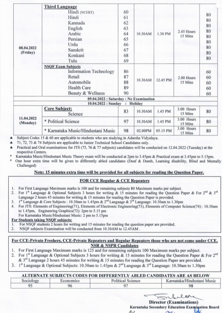 ಈ ಪಟ್ಟಿಯಂತೆ ಮಾರ್ಚ್ 28 ರಿಂದ ಪರೀಕ್ಷೆ ಆರಂಭಗೊಂಡು, ಎಪ್ರಿಲ್ 11 ರಂದು ಮುಕ್ತಾಯಗೊಳ್ಳಲಿದೆ.