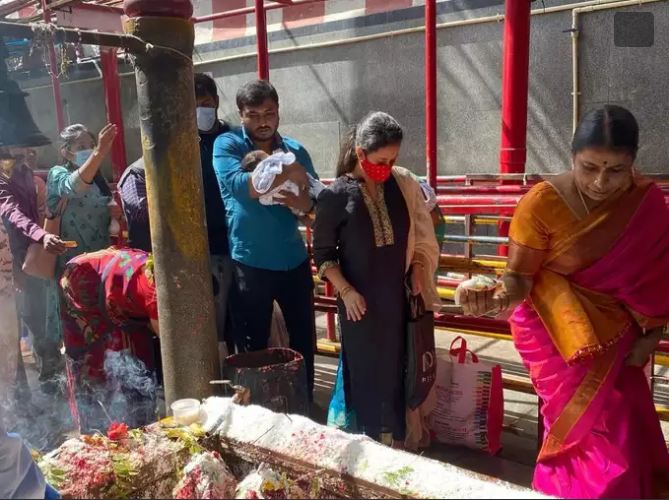 ಬೆಂಗಳೂರಿನ ಮೆಜೆಸ್ಟಿಕ್ನಲ್ಲಿ ಇರುವ ಅಣ್ಣಮ್ಮ ದೇವಸ್ಥಾನಕ್ಕೆ ನಟಿ ಅಮೂಲ್ಯ ಭೇಟಿ ನೀಡಿದ್ದಾರೆ. ಅಮೂಲ್ಯ ಪತಿ ಮತ್ತು ಮಕ್ಕಳ ಜೊತೆಗೆ ದೇವಸ್ಥಾನಕ್ಕೆ ಭೇಟಿ ನೀಡಿದ್ದು ಹರಕೆ ತೀರಿಸಿದ್ದಾರೆ. ಮಗು ಆದ ಬಳಿಕ ಇದೆ ಮೊದಲ ಬಾರಿಗೆ ಅಮೂಲ್ಯ ಹೊರಗೆ ಕಾಣಿಸಿಕೊಂಡಿದ್ದಾರೆ. ಇನ್ನು ಮಕ್ಕಳ ಜೊತೆಗೆ ಕಾಣಿಸಿಕೊಂಡಿದ್ದು ಮಾತ್ರ ವಿಶೇಷವಾಗಿತ್ತು.