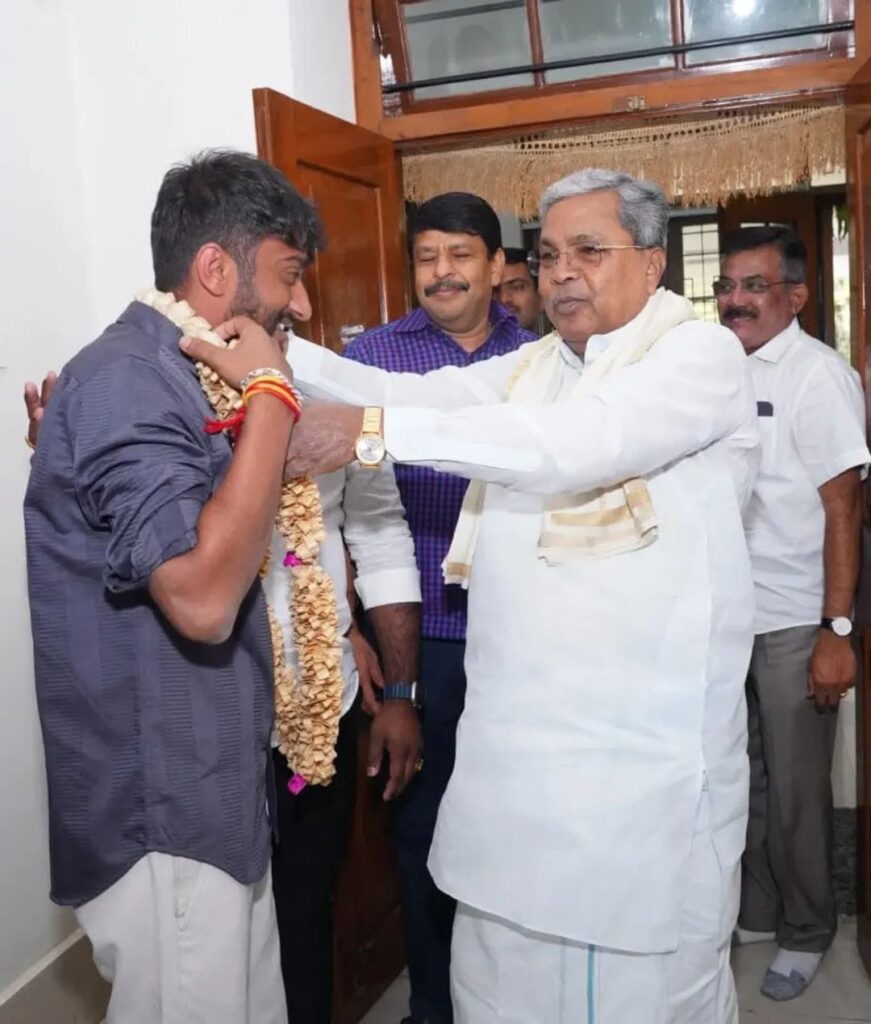 ಗಿಲ್ಲಿ ಸಿಎಂ ಸಿದ್ದರಾಮಯ್ಯ ಅವರು ಸಿಎಂ ಸರಕಾರಿ ನಿವಾಸ ಕಾವೇರಿಯಲ್ಲಿ ಭೇಟಿಯಾಗಿದ್ದಾರೆ. ಈ ಸಂದರ್ಭದಲ್ಲಿ ಸಿಎಂ ಹಾರವನ್ನು ಹಾಕಿ ಅಭಿನಂದನೆ ಸಲ್ಲಿಸಿದ್ದಾರೆ.