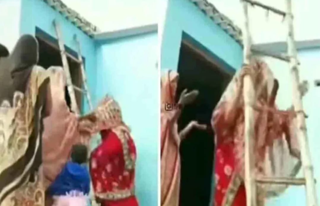 ಸೊಸೆಯನ್ನು ಮನೆಯ ಒಳಗೆ ಕರೆದುಕೊಳ್ಳಲು ಅತ್ತೆ ಸಿದ್ಧಳಾಗಿ ನಿಂತಿದ್ದಾಳೆ. ಆ ಸಂದರ್ಭದಲ್ಲಿ ವಧು ನೋಡಿದ್ರೆ ಮನೆಯ ಮೇಲೇರಿ ಕುಳಿತಿದ್ದಾಳೆ. ಓಡಿ ಬಂದ ವರ ಅವಳ ಮನವೊಲಿಸಲು ಪ್ರಯತ್ನಿಸಿದರೂ ಸಹ ಯಾವುದೇ ಪ್ರಯೋಜವಾಗುತ್ತಿಲ್ಲ. ಏಣಿಯ ಸಹಾಯದಿಂದ ಕೆಳಗಿಳಿಯಲು ಹೇಳುತ್ತಿದ್ದರೂ ಕಾಲಿನಿಂದ ಏಣಿಯನ್ನು ದೂರ ತಳ್ಳುತ್ತಿದ್ದಾಳೆ. ದೃಶ್ಯ ಇದೀಗ ಸಾಮಾಜಿಕ ಜಾಲತಾಣದಲ್ಲಿ ಫುಲ್ ವೈರಲ್ ಆಗಿದೆ.