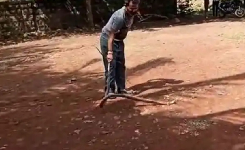 ಹಾವು ಅಂದ್ರೆ ಸಾಮಾನ್ಯವಾಗಿ ಎಲ್ಲರಿಗೂ ಭಯ ಇದ್ದೇ ಇರುತ್ತೆ. ಆದರೆ ಇಲ್ಲೊಬ್ಬ ಕುಡಿದ ಮತ್ತಿನಲ್ಲಿ ಹಾವನ್ನು ಹೇಗೆ ಆಟ ಆಡಿಸ್ತಿದ್ದಾನೆ ಗೊತ್ತಾ? ಈ ಫೋಟೋ ಫುಲ್ ವೈರಲ್ ಆಗಿದೆ.