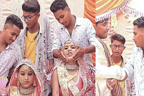 ಈ ವೀಡಿಯೋ ತುಣುಕಲ್ಲಿ ವರ ಮತ್ತು ವಧು ವೇದಿಕೆ ಮೇಲೆ ಕುಳಿತಿದ್ದಾರೆ. ಈ ವೇಳೆ ವಧು ಕುಳಿತಿದ್ದ ಕುರ್ಚಿಯ ಹಿಂದಿನಿಂದ ಬಂದ ವರನ ಸ್ನೇಹಿತನೊಬ್ಬ, ವಧುವಿನ ಕೆನ್ನೆಗೆ ಕೈಹಾಕಿ ಕೀಟಲೆ ಮಾಡಲು ಆರಂಭಿಸುತ್ತಾನೆ. ಇದರಿಂದ ವಧುವು ಸ್ವಲ್ಪ ಅಸಮಾಧಾನಗೊಂಡಂತೆ ಕಾಣುತ್ತದೆ. ಇದನ್ನು ನೋಡಿದ ವರ ತಕ್ಷಣ ಮೇಲೆದ್ದು, ಕೋಪದಿಂದ ಸ್ನೇಹಿತನನ್ನು ತನ್ನ ಹತ್ತಿರ ಎಳೆದು, ಕಪಾಳ ಮೋಕ್ಷ ಮಾಡುತ್ತಾನೆ.