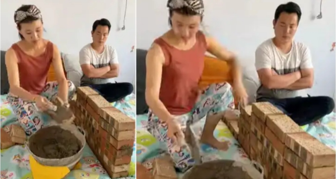 ಹೌದು.ಈ ವಿಡಿಯೋದಲ್ಲಿ ಪತಿ-ಪತ್ನಿ ಜಗಳ ಬೇರೊಂದು ಹಂತಕ್ಕೆ ತಲುಪಿದ್ದು,ಪತಿಯ ಜೊತೆ ಕಿತ್ತಾಡಿಕೊಂಡ ಮಹಿಳೆ ಕೋಪದಲ್ಲಿ ಹಾಸಿಗೆ ಮೇಲೆ ಇಟ್ಟಿಗೆ ಗೋಡೆಯನ್ನೇ ಕಟ್ಟಿದ್ದಾಳೆ. ಇಟ್ಟಿಗೆ ಹಾಗೂ ಸಿಮೆಂಟ್ ತಂದಿಟ್ಟುಕೊಂಡು ಮಹಿಳೆ ಖುದ್ದಾಗಿ ಗೋಡೆ ಕಟ್ತಾ ಇರೋ ದೃಶ್ಯ ಕ್ಯಾಮರಾದಲ್ಲಿ ಸೆರೆಯಾಗಿದೆ.