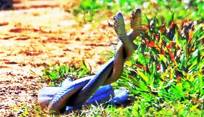 ಈ ಅಚ್ಚರಿಯ ವಿಡಿಯೋವನ್ನು ಗುಂಜನ್ ಕಪೂರ್ ಎಂಬುವವರು ತಮ್ಮ ಇನ್ಸ್ಟಾಗ್ರಾಮ್ ಪ್ರೊಫೈಲ್ನಲ್ಲಿ ಹಂಚಿಕೊಂಡಿದ್ದು, ಎರಡು ಹಾವುಗಳು ಚಲಿಸುತ್ತಿರುವ ಹಾಗೂ ಪರಸ್ಪರ ಸುತ್ತಿಕೊಂಡಿರುವುದನ್ನು ಗಮನಿಸಬಹುದು.