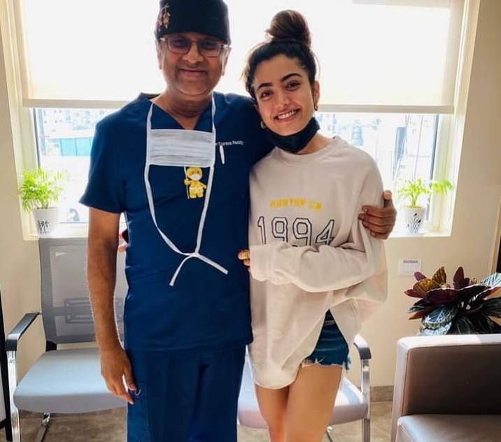 ತನ್ನ ಬ್ಯುಸಿ ಶೆಡ್ಯೂಲ್ ಗಳ ಮಧ್ಯೆ, ಸಮಯ ತೆಗೆದುಕೊಂಡು ವೈದ್ಯರನ್ನು ಭೇಟಿಯಾಗಿದ್ದಾರೆ. ಹೈದರಾಬಾದ್ ನಲ್ಲಿರುವ ಪ್ರಸಿದ್ಧ ಆರ್ಥೋಪಿಡಿಕ್ ಡಾ.ಗುರುವ ರೆಡ್ಡಿ ಅವರ ಆಸ್ಪತ್ರೆಯಲ್ಲಿ ರಶ್ಮಿಕಾ ಮಂದಣ್ಣ ಕಾಣಿಸಿಕಂಡಿದ್ದಾರೆ. ವೈದ್ಯರ ಪಕ್ಕ ನಿಂತು ಪೋಸ್ ನೀಡಿರುವ ರಶ್ಮಿಕಾ ಫೋಟೋ ಸಾಮಾಜಿಕ ಜಾಲಾತಣದಲ್ಲಿ ವೈರಲ್ ಆಗಿದೆ. ರಶ್ಮಿಕಾ ಅವರನ್ನು ಭೇಟಿಯಾದ ಬಗ್ಗೆ ಸ್ವತಃ ಡಾ.ಗುರುವ ರೆಡ್ಡಿ ಸಾಮಾಜಿಕ ಜಾಲತಾಣದಲ್ಲಿ ಬರೆದುಕೊಂಡಿದ್ದಾರೆ. ರಶ್ಮಿಕಾ ಮಂಡಿನೋವಿನಿಂದ ಬಳಲುತ್ತಿದ್ದಾರೆ ಎಂದು ಹೇಳಿದ್ದಾರೆ. ಅಲ್ಲದೇ ಆತಂಕ ಪಡುವ ಅವಶ್ಯಕತೆ ಇಲ್ಲ, ಶೀಘ್ರದಲ್ಲೇ ಗುಣಮುಖ ಆಗುತ್ತಾರೆ ಎಂದು ವೈದ್ಯರು ಅಭಿಮಾನಿಗಳಿಗೆ ತಿಳಿಸಿದ್ದಾರೆ.
