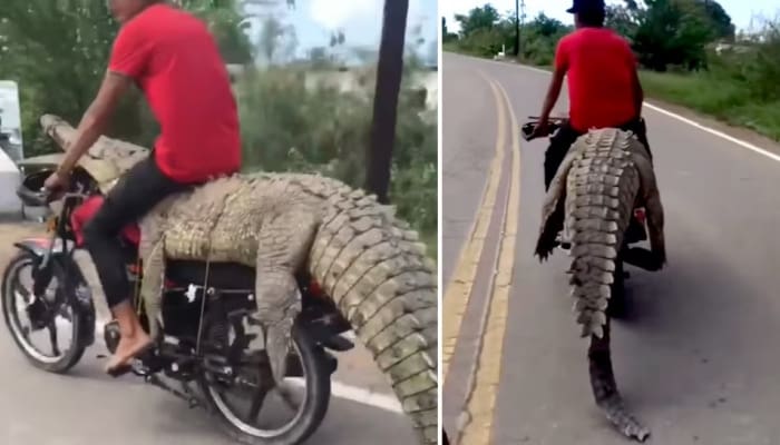 ಅಬ್ಬಾ ! ದೈತ್ಯ ಮೊಸಳೆಯನ್ನು ಬೈಕ್ ಗೇರಿಸಿ, ಯುವಕನ ರೈಡ್ | ಭಯ ಬೀಳಿಸುವ ಈ ವೀಡಿಯೋ ನೀವು ನೋಡಲೇ ಬೇಕು!