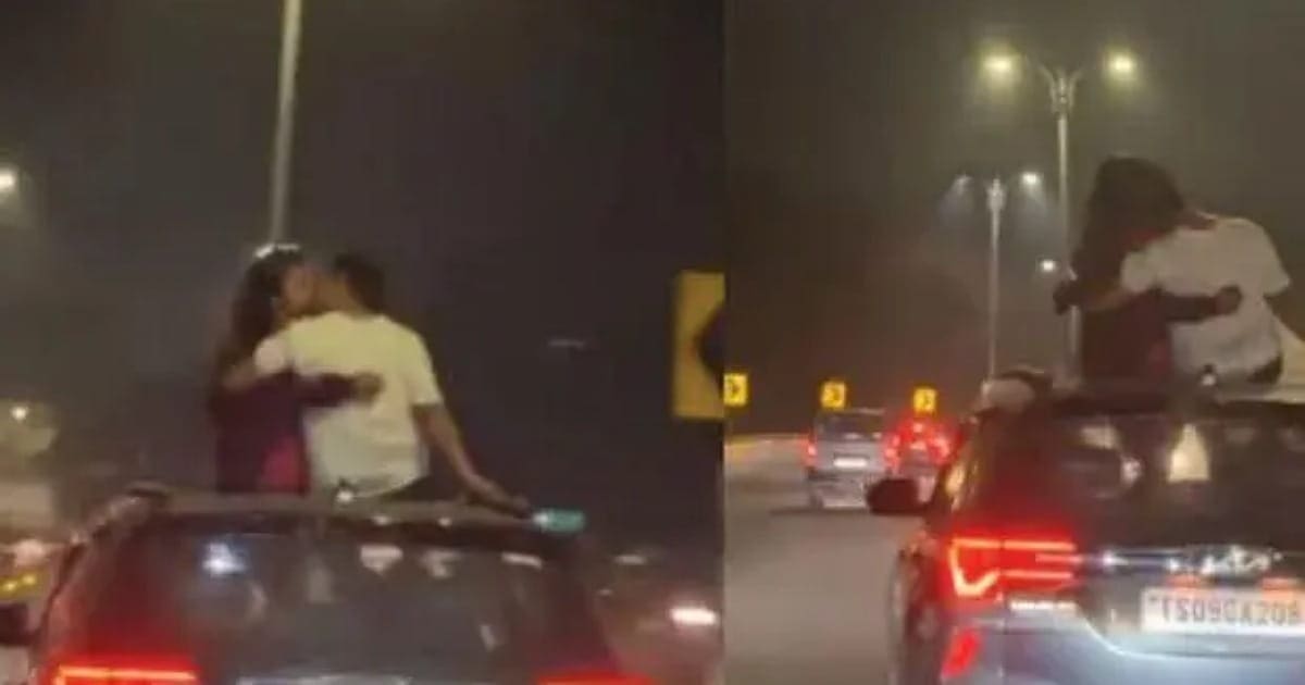 ಹೈದರಾಬಾದ್ನಲ್ಲಿ(Hyderabad) ಚಲಿಸುತ್ತಿರುವ ಕಾರಿನ ಮೇಲೆ (ಸನ್ ರೂಫ್) ಮೇಲೆ ಕುಳಿತ ಕೂತು ಜೋಡಿಯೊಂದು ಪರಸ್ಪರ ಚುಂಬಿಸುತ್ತ, ಲಿಪ್ ಲಾಕ್( Lip lock)ಮಾಡಿಕೊಂಡು ಹಾಯಾಗಿ ಹೋಗುತ್ತಿದ್ದಾರೆ. ಈ ವಿಡಿಯೋ ಸೋಶಿಯಲ್ ಮೀಡಿಯಾದಲ್ಲಿ(Social media)ವೈರಲ್ ಆಗಿ ನೆಟ್ಟಿಗರ ಆಕ್ರೋಶಕ್ಕೆ ಕಾರಣವಾಗಿದೆ.ಈ ಘಟನೆ ಹೈದರಾಬಾದ್ನಲ್ಲಿರುವ ಪಿವಿ ನರಸಿಂಹರಾವ್ ಎಕ್ಸ್ಪ್ರೆಸ್ವೇಯಲ್ಲಿ ನಡೆದಿದೆ ಎನ್ನಲಾಗಿದೆ. ಸಂಚಾರಿ ನಿಯಮಗಳನ್ನು ಗಾಳಿಗೆ ತೂರಿ ಬೇಕಾಬಿಟ್ಟಿ ವಾಹನ ಚಾಲನೆ ಮಾಡುವ ಜೊತೆಗೆ ಅಸಭ್ಯವಾಗಿ ವರ್ತಿಸುವವರ ಸಂಖ್ಯೆ ದಿನೇ ದಿನೇ ಏರಿಕೆಯಾಗುತ್ತಿದೆ. ಈ ನಡುವೆ ಈ ಜೋಡಿಯ ಹುಚ್ಚಾಟಕ್ಕೆ ಸಾಮಾಜಿಕ ಜಾಲತಾಣದಲ್ಲಿ ಭಾರೀ ಆಕ್ರೋಶ ವ್ಯಕ್ತವಾಗಿದೆ.