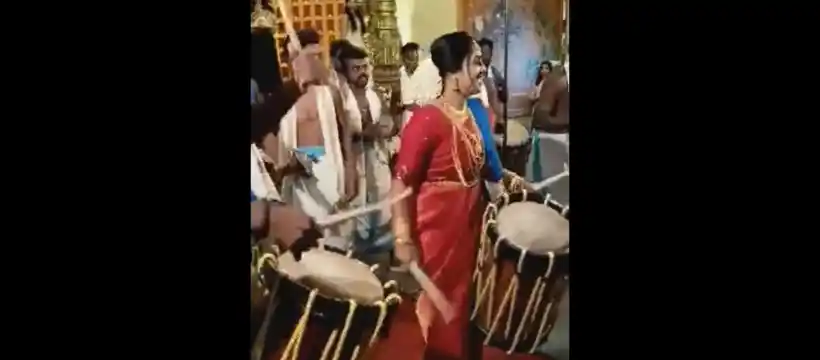 ಕೇರಳದ ಸಾಂಪ್ರದಾಯಿಕ ಆರ್ಕೆಸ್ಟ್ರಾ ಎಂದೇ ಕರೆಯಲ್ಪಡುವ ಚೆಂಡ ಮೇಳವನ್ನು ಸಾಮಾನ್ಯವಾಗಿ ರಾಜ್ಯದಲ್ಲಿ ಅದ್ಧೂರಿ ವಿವಾಹಗಳಲ್ಲಿ ಕಾಣಬಹುದು. ಆದರೆ ತನ್ನ ಮದುವೆಯಲ್ಲಿ ಸ್ವತಃ ಚೆಂಡೆ ನುಡಿಸುವ ಮೂಲಕ ವಧು ನೋಡುಗರ ಹುಬ್ಬೇರಿಸುವಂತೆ ಮಾಡಿದ್ದಾಳೆ.