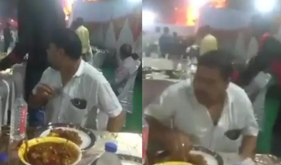 ಮದುವೆ ಚೆನ್ನಾಗಿತ್ತು ಎಂದರೆ, ಮದುವೆ ಊಟ ತುಂಬಾ ಸೊಗಸಾಗಿತ್ತು ಎಂದರ್ಥ ಎಂಬ ಮಾತಿದೆ. ಮದುವೆಯಲ್ಲಿ ಊಟಕ್ಕೆ ತೆರಳಲು ಕೆಲವರಿಗೆ ಅವಸರವಾದರೆ, ಇನ್ನೂ ಕೆಲವರಿಗೆ ಭರ್ಜರಿ ಭೋಜನ ಸವಿಯುವ ಆಸೆ. ಅದರಲ್ಲೂ ಕೆಲವರು ಯಾವುದೇ ಯೋಚನೆಯಿಲ್ಲದೆ ಊಟ ಮಾಡುವುದರಲ್ಲೇ ಮಗ್ನರಾಗಿರುತ್ತಾರೆ. ಇದಕ್ಕೆ ತಾಜಾ ಉದಾಹರಣೆಯಂತಿದೆ ಈ ವಿಡಿಯೋ.
