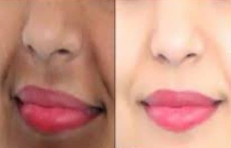 - ಟೀ ಚಮಚ ಹಸಿ ಅಕ್ಕಿಯನ್ನು ಮಿಶ್ರಣ ಮಾಡಿ ಮತ್ತು 2 ಚಮಚ ಗೋಧಿ ಹಿಟ್ಟು ಮತ್ತು ಬೇಸನ್ ಸೇರಿಸಿ. ಹಾಲಿನೊಂದಿಗೆ ಪೇಸ್ಟ್ ಮಾಡಿ ಮತ್ತು ಮುಖವಾಡವಾಗಿ ಅನ್ವಯಿಸಿ. 20 ನಿಮಿಷಗಳ ನಂತರ ಅದನ್ನು ಒದ್ದೆ ಮಾಡಿ ಮತ್ತು ಮುಖವನ್ನು ಸ್ಕ್ರಬ್ ಮಾಡಿ. ನಂತರ ತೊಳೆಯಿರಿ. ನೀವು ಸುಮಾರು 6 ವಾರಗಳಲ್ಲಿ ಬಾಯಿಯ ಸುತ್ತಲೂ ಗೋಚರವಾಗಿ ಹಗುರವಾದ ಚರ್ಮವನ್ನು ನೋಡಬಹುದು.