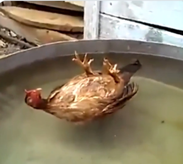ಈ ವೀಡಿಯೋ ನೋಡಿದಾಗ, ನಿಮಗೆ ತಕ್ಷಣ ಇದು ನೀರಿನಲ್ಲಿ ತೇಲುವ ಕೋಳಿ ಎಂಬಂತೆ ಕಾಣುತ್ತದೆ. ಆದರೆ ಒಂದು ಕ್ಷಣ ಸತ್ತಂತೆಯೇ ಕಾಣುವ ಈ ಕೋಳಿಯ ಕಾಲುಗಳು ಮೇಲೆ ಇರುವ ಸ್ಥಿತಿಯಲ್ಲಿ ತೇಲುತ್ತಿರುವುದನ್ನು ಕಂಡಾಗ ಯಾರಿಗಾದರೂ ಗೊಂದಲವಾಗದೇ ಇರದು…ನಿಮಗೆ ತಕ್ಷಣಕ್ಕೆ ಕೋಳಿಯಲ್ಲಿ ಚಲನೆ ಕಾಣಿಸುವುದೇ ಇಲ್ಲ…! ಆದರೆ, ನಂತರ ಕಾಣಸಿಗುವ ದೃಶ್ಯ ಮಾತ್ರ ನಮ್ಮಲ್ಲಿ ನಗುವುಕ್ಕುವಂತೆ ಮಾಡುವುದಂತೂ ನಿಜ.