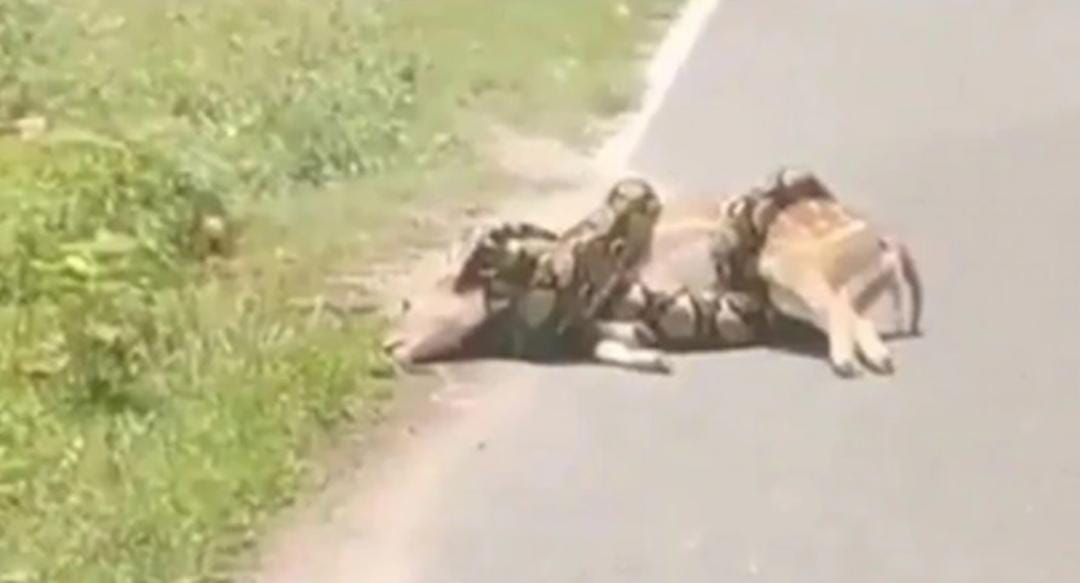 ಭಯಾನಕ ಜೀವಿಗಳಲ್ಲಿ ಹೆಬ್ಬಾವು ಕೂಡ ಒಂದು. ಅದು ತನಗಿಂತ ದೊಡ್ಡ ಪ್ರಾಣಿಗಳನ್ನೂ ಸಹ ಜೀವಂತವಾಗಿ ನುಂಗಿ ಹಾಕುತ್ತದೆ. ಇತ್ತೀಚಿನ ದಿನಗಳಲ್ಲಿ ಅಂತಹುದೇ ವೀಡಿಯೋವೊಂದು ಸಾಮಾಜಿಕ ಜಾಲತಾಣಗಳಲ್ಲಿ ವೈರಲ್ ಆಗುತ್ತಿದೆ.