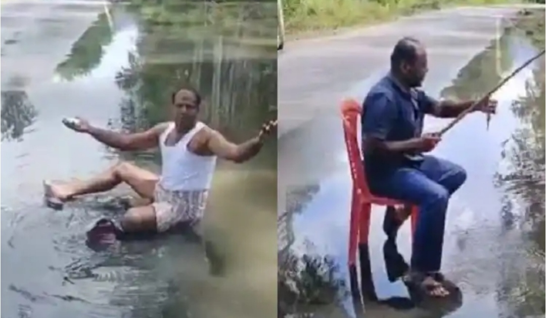 Home » ರಸ್ತೆಯಲ್ಲಿ ನಿಂತ ನೀರಲ್ಲೇ ಮೀನುನೂ ಹಿಡಿದ್ರು ಬಟ್ಟೇನೂ ಒಗೆದ್ರು | ಯಾರೀ ವ್ಯಕ್ತಿ? ಇವರ್ಯಾಕೆ ಹಿಂಗೇ?
