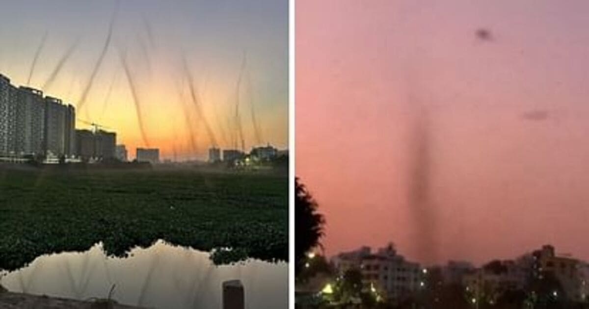 #WATCH | Pune, Maharashtra: Swarms of mosquitoes form tornadoes in the skies of Keshavnagar and Kharadi Gavthan areas. The menace is caused by the elevated water levels of the Mula Mutha River. pic.twitter.com/ynD0zlyyAR