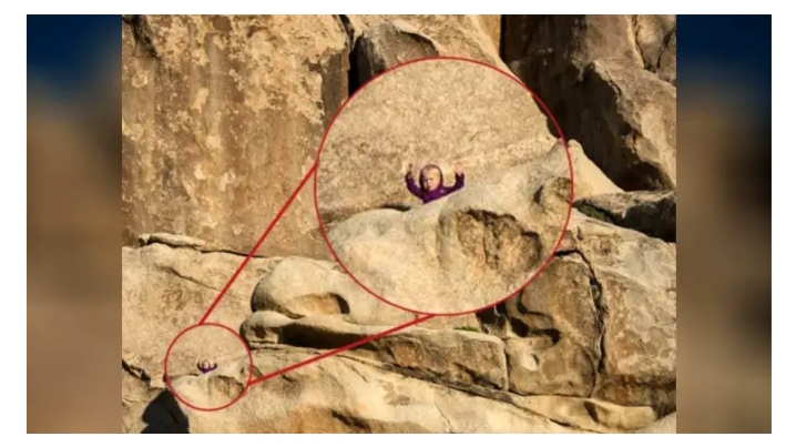 ಅಂದಹಾಗೆ ಈ ಆಪ್ಟಿಕಲ್ ಇಲ್ಯೂಶನ್ ಚಿತ್ರಗಳಿಂದ ನಿಮ್ಮ ವ್ಯಕ್ತಿತ್ವವನ್ನೂ ತಿಳಿಯಬಹುದು. ಈ ಬಗ್ಗೆ ಹಲವು ತಜ್ಞರು ಅಭಿಪ್ರಾಯಗಳನ್ನು ಹಂಚಿಕೊಂಡಿದ್ದಾರೆ. ಈ ಬಗ್ಗೆ ನಿಮಗೆ ಕುತೂಹಲವಿದ್ದರೆ ಈ ಬರಹ ಓದಿ. ಇದೀಗ ಸಾಮಾಜಿಕ ಜಾಲತಾಣಗಳಲ್ಲಿ ಒಂದು ಚಿತ್ರ ವೈರಲ್ ಆಗಿದೆ. ಕಲ್ಲು ಬಂಡೆಗಳಿಂದ ಕೂಡಿರುವ ಮನಮೋಹಕ ಪ್ರಾಕೃತಿಕ ಚಿತ್ರವದು. ಆದರೆ ಆ ಚಿತ್ರದಲ್ಲಿ ಪುಟಾಣಿ ಹುಡುಗಿಯೊಬ್ಬಳು ಅವಿತಿದ್ದಾಳೆ. ಆದರೆ ವಿಶಾಲ ಚಿತ್ರದಲ್ಲಿ ಅದನ್ನು ಹುಡುಕುವುದೇ ನಿಮಗಿರುವ ಸವಾಲು. ಮೇಲೆ ನೀಡಲಾಗಿರುವ ಚಿತ್ರವನ್ನು ಸೂಕ್ಷ್ಮವಾಗಿ ಮತ್ತೊಮ್ಮೆ ಗಮನಿಸಿ. ಅದರಲ್ಲಿರುವ ಬಾಲಕಿಯನ್ನು ಪತ್ತೆಹಚ್ಚಿ.