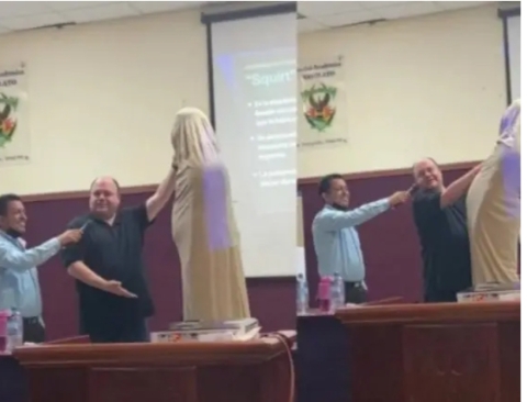 ಶಿಕ್ಷಕ ಒಂದು ದೊಡ್ಡ ಕಾಂಡೋಮನ್ನು ವಿದ್ಯಾರ್ಥಿಗೆ ಸುತ್ತಿದ್ದಾರೆ. ಆ ವೇಳೆ ಹೇಗೆ ಕಾಂಡೋಮನ್ನು ನಿಧಾನಕ್ಕೆ ಬಿಡಿಸಬೇಕು, ಅದನ್ನು ಹೇಗೆ ಸುರಕ್ಷಿತ ಲೈಂಗಿಕಕ್ರಿಯೆಗೆ ಬಳಸಬಹುದು ಎಂದು ವಿವರಣೆ ನೀಡಿದ್ದಾರೆ.