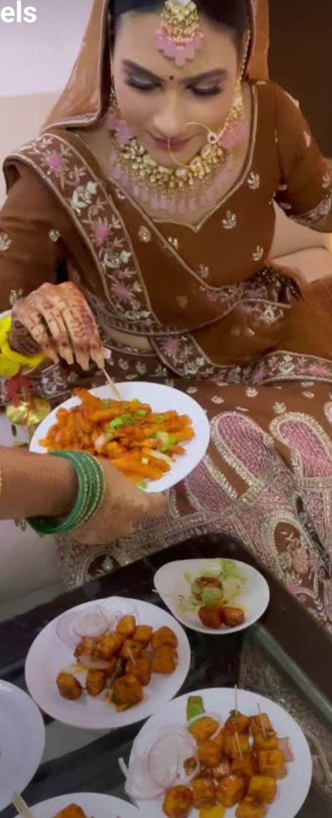 ಎಸ್, ಮುಹೂರ್ತಕ್ಕೆ ಸಮಯ ಆಯ್ತು ಬಾರಮ್ಮ ಅಂತ ಮದುವೆ ಮಂಟಪದಿಂದ ಕರೆಯುತ್ತಾ ಇದ್ರೆ, ಇಲ್ಲಿ ಮದುಮಗಳು ಫುಡ್ ಆರ್ಡರ್ ಮಾಡಿ ಸಖತ್ ಆಗಿ ತಿಂತಾ ಇದ್ದಾಳೆ. ಅದರಲ್ಲಿಯೂ ಚೆನ್ನಾಗಿ ಡ್ರೆಸ್ ಮಾಡಿಕೊಂಡು, ಮೇಕಪ್ ಹಾಕಿ, ಮೂಗು ಬೊಟ್ಟನ್ನು ಸೇರಿಸಿ ತಿಂಡಿ ತಿಂತಾ ಇದ್ದಾಳೆ.