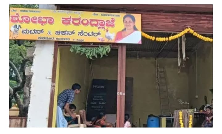 Viral News: ಅಭಿಮಾನಿಯೊಬ್ಬರು ತನ್ನ ಚಿಕನ್ ಮಟನ್ ಮಾಂಸದಂಗಡಿಗೆ ಕೇಂದ್ರ ಸಚಿವೆ ಶೋಭಾ ಕರಂದ್ಲಾಜೆ ಅವರ ಹೆಸರಿಟ್ಟು ತನ್ನ ಅಭಿಮಾನ ಮೆರೆದಿದ್ದಾರೆ. ಅಂಗಡಿಯ ಫೋಟೋ ಇದೀಗ ಸಾಮಾಜಿಕ ಜಾಲತಾಣದಲ್ಲಿ ವೈರಲ್ ಆಗಿದೆ.