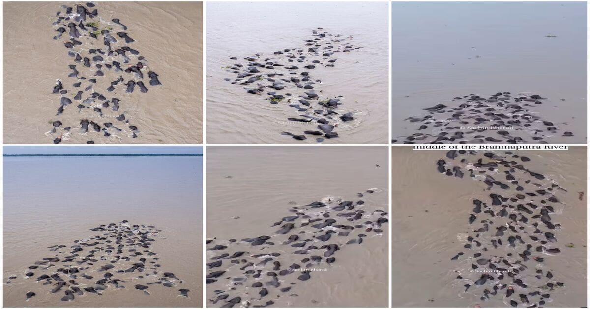 ಹೌದು, ಅಸ್ಸಾಂನಲ್ಲಿ(Assam) ಛಾಯಾಗ್ರಾಹಕರೊಬ್ಬರು ಆನೆಗಳ ವಿಡಿಯೋ ಚಿತ್ರೀಕರಿಸಿದ್ದಾರೆ. ಆ ವೀಡಿಯೋ ನೋಡಿದರೆ ಬೆಚ್ಚಿ ಬೀಳುತ್ತೀರಿ. ಅದರಲ್ಲಿ ಆನೆಗಳ ಗುಂಪೊಂದು ಈಜುತ್ತಾ ನದಿ ದಾಟುತ್ತಿರುವ ಅದ್ಭುತ ದೃಶ್ಯ ಸೆರೆಯಾಗಿದೆ. ಅಸ್ಸಾಂನ ಪ್ರಮುಖ ನದಿ ಬಂದರುಗಳಲ್ಲಿ ಒಂದಾದ ನಿಮತಿ ಘಾಟ್‌ನಲ್ಲಿ(Nimati Ghat) ಚಿತ್ರೀಕರಿಸಲಾದ ಈ ಡೋನ್ ದೃಶ್ಯಗಳು ಆನೆಗಳ ಹಿಂಡು ಬ್ರಹ್ಮಪುತ್ರ ನದಿಯನ್ನು ದಾಟುತ್ತಿರುವುದನ್ನು ತೋರಿಸುತ್ತದೆ.