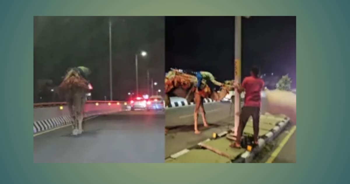 Drunk Man wild ride on Camel: ಕಂಠಪೂರ್ತಿ ಕುಡಿದು ವ್ಯಕ್ತಿಯೊಬ್ಬ ಹೈದರಾಬಾದ್ನ ಎಕ್ಸ್ಪ್ರೆಸ್ ವೇಯಲ್ಲಿ ಒಂಟೆ ಸವಾರಿ ಮಾಡಿದ ಘಟನೆ ನಡೆದಿದೆ. ಇದನ್ನು ಗಮನಿಸಿದ ಕೆಲವರು ಆತನನ್ನು ಹಿಂಬಾಲಿಸಿ ತಡೆಯುವ ಪ್ರಯತ್ನ ಮಾಡಿದ್ದಾರೆ. ಹಾಗೂ ಆಗುವ ಅನಾಹುತವನ್ನು ತಪ್ಪಿಸಿದ್ದಾರೆ.