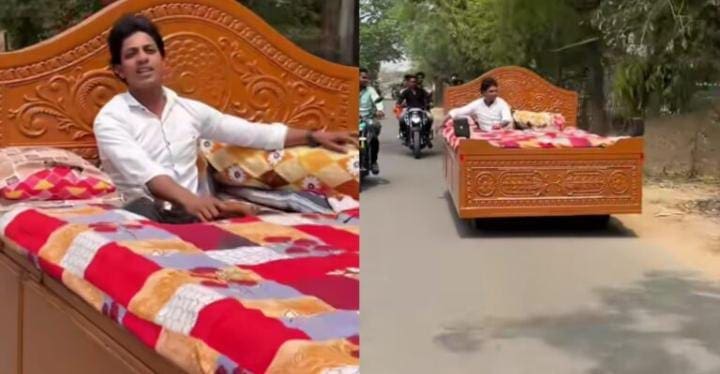 Viral video: ಇಲ್ಲೊಬ್ಬ ಭೂಪ ಥೇಟು ಹಾಸಿಗೆಯ ರೀತಿಯಲ್ಲೇ ಕಾರ್ ಒಂದನ್ನು ರಚಿಸಿ ನೋಡುಗರ ಗಮನ ಸೆಳೆದಿದ್ದಾನೆ. ಪಶ್ಚಿಮ ಬಂಗಾಳದ ಎಸ್.ಕೆ. ನಬಾಬ್ ಎಂಬಾತ ರಚಿಸಿರುವುದಾಗಿದೆ.