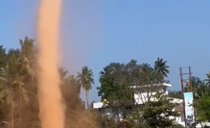 ಮೈದಾನದ ಮಧ್ಯೆ ಧೂಳಿನ ಗುಂಪು ಕಟ್ಟಿಕೊಂಡು ಕಟ್ಟಿಕೊಂಡು ಗಿರ ಗಿರ್ರನೆ ಸುಳಿ ತಿರುಗಿದೆ. ಸುಳಿಗಾಳಿ ಈ ಬಾರಿ ವಿಚಿತ್ರವಾಗಿ ತಿರುಗುವ ವಿದ್ಯಮಾನ ಕಂಡು ಜನ ಆಶ್ಚರ್ಯದಿಂದ ನಿಂತಿ ನೋಡಿದ್ದಾರೆ.
