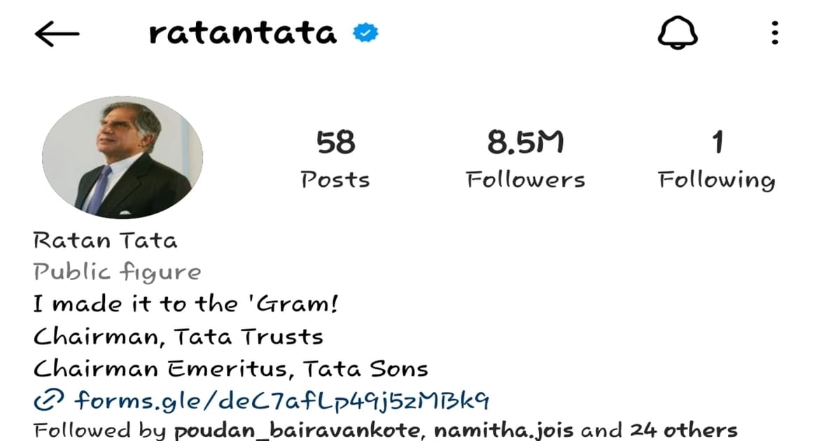 ಅಂದಹಾಗೆ ಇದು ಯಾವುದೇ ಸೆಲೆಬ್ರಿಟಿಗಳು ಅಥವಾ ಅವರ ಗೆಳೆಯರಲ್ಲ. ಸದಾ ಸಮಾಜ ಸೇವೆ ಹಾಗೂ ಸರಳ ವ್ಯಕ್ತಿತ್ವದ ಮೂಲಕ ಯುವ ಜನತೆಗೆ ಸ್ಫೂರ್ತಿಯಾಗಿರುವ ರತನ್ ಟಾಟಾರವರು ಫಾಲೋ ಮಾಡುವ ಏಕೈಕ ಇನ್ಸ್ಟಾಗ್ರಾಮ್ ಖಾತೆ ಟಾಟಾ ಗ್ರೂಪ್ನ ಟಾಟಾ ಟ್ರಸ್ಟ್ಸ್(Tata Trust) ನದ್ದು. ಇತ್ತೀಚಿನ ದಿನಗಳಲ್ಲಿ ಟಾಟಾ ಟ್ರಸ್ಟ್ಗಳೊಂದಿಗೆ ಸಕ್ರಿಯವಾಗಿ ತೊಡಗಿಸಿಕೊಂಡಿರುವ ರತನ್ ಟಾಟಾ, ಅದರ ಇನ್ಸ್ಟಾಗ್ರಾಮ್ ಖಾತೆಯನ್ನು ಫಾಲೋ ಮಾಡ್ತಿದ್ದಾರೆ.