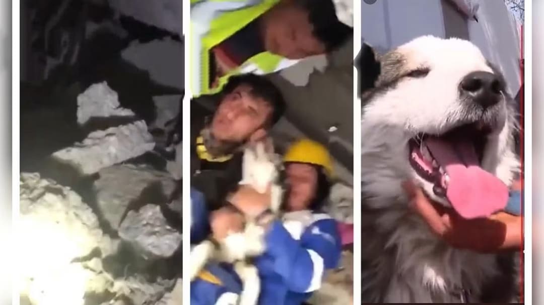 ವಿನಾಶಕಾರಿ ಟರ್ಕಿ ಭೂಕಂಪಗಳ ನಡುವೆ ಪವಾಡದಲ್ಲಿ, ನೈಸರ್ಗಿಕ ವಿಪತ್ತು ದೇಶವನ್ನು ಬೆಚ್ಚಿಬೀಳಿಸಿ ಸಾವಿರಾರು ಜನರನ್ನು ಬಲಿ ತೆಗೆದುಕೊಂಡ 23 ದಿನಗಳ ನಂತರ ದಕ್ಷಿಣ ಟರ್ಕಿಯಲ್ಲಿ ಕಟ್ಟಡವೊಂದರ ಅವಶೇಷಗಳಡಿಯಲ್ಲಿ ನಾಯಿಯೊಂದು ಜೀವಂತವಾಗಿ ಕಂಡುಬಂದಿದೆ. ವಿಡಿಯೋದಲ್ಲಿ ರಕ್ಷಣಾ ಕಾರ್ಯಕರ್ತರು ಎರಡು ದೊಡ್ಡ ಕಾಂಕ್ರೀಟ್ ಚಪ್ಪಡಿಗಳ ನಡುವೆ ನಾಯಿಯನ್ನು ಹೊರತೆಗೆಯಲು ಪ್ರಯತ್ನಿಸುತ್ತಿರುವ ಕಾಣಬಹುದು. ಸಂತೋಷಗೊಂಡ ನಾಯಿ ರಕ್ಷಕರಿಂದ ಅಪ್ಪುಗೆ ಮತ್ತು ಮುದ್ದಾಡುವಿಕೆಯನ್ನು ಪಡೆಯುತ್ತದೆ. ವೀಡಿಯೋ ರೆಕಾರ್ಡ್ ಮಾಡುತ್ತಿರುವ ಮಹಿಳೆಯೊಬ್ಬರು ನಾಯಿ ಜೀವಂತವಾಗಿ ಮತ್ತು ಆರೋಗ್ಯವಾಗಿರುವುದನ್ನು ನೋಡಿ ನಿರಾಳರಾಗಿದ್ದಾರೆ.
