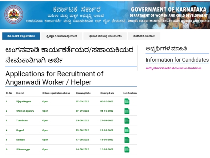 ನೇಮಕಾತಿ ಇಲಾಖೆ : ಮಹಿಳಾ ಮತ್ತು ಮಕ್ಕಳ ಅಭಿವೃದ್ಧಿ ಇಲಾಖೆ.