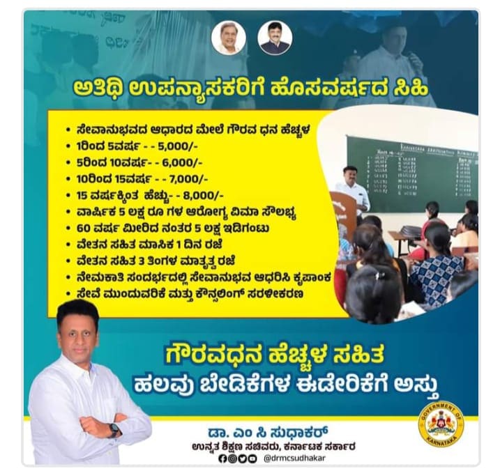 Guest Lecturers: ಉಪನ್ಯಾಸಕರ ಬೇಡಿಕೆಗಳನುಸಾರವಾಗಿ ಯಾವುದೇ ಕಾನೂನು ತೊಡಕಾಗದಂತೆ ಗೌರವಧನವನ್ನು ಸೇವಾ ಅವಧಿಯಲ್ಲಿ ಹೆಚ್ಚಿಸುವ ಜೊತೆಗೆ ಹಲವು ನಿರ್ಧಾರಗಳನ್ನು ಮುಖ್ಯಮಂತ್ರಿ ಸಿದ್ದರಾಮಯ್ಯ ಅವರ ಗೃಹಕಚೇರಿಯಲ್ಲಿ ಸಭೆ ನಡೆಸಲಾಗಿದೆ ಕೆಲವೊಂದು ತೀರ್ಮಾನಗಳನ್ನು ಕೈಗೊಳ್ಳಲಾಗಿದೆ.