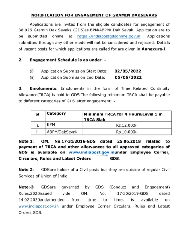 ಹುದ್ದೆ : ಬ್ರಾಂಚ್ ಪೋಸ್ಟ್ ಮಾಸ್ಟರ್, ಅಸಿಸ್ಟೆಂಟ್ ಬ್ರಾಂಚ್ ಪೋಸ್ಟ್ ಮಾಸ್ಟರ್, ಗ್ರಾಮೀಣ ಡಾಕ್ ಸೇವಕ