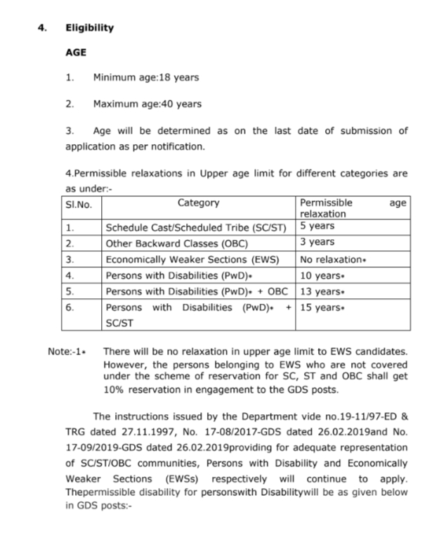 ವಯೋಮಿತಿ ಸಡಿಲಿಕೆ: ಒಬಿಸಿ ಅಭ್ಯರ್ಥಿಗಳಿಗೆ 03 ವರ್ಷ, ಪ.ಜಾ, ಪ.ಪಂಗಡದ ಅಭ್ಯರ್ಥಿಗಳಿಗೆ 05 ವರ್ಷ, ಪಿಡಬ್ಲ್ಯೂಡಿ ಅಭ್ಯರ್ಥಿಗಳಿಗೆ 10 ವರ್ಷ ವಯೋಮಿತಿಯಲ್ಲಿ ಸಡಿಲಿಕೆ ನೀಡಲಾಗಿದೆ.