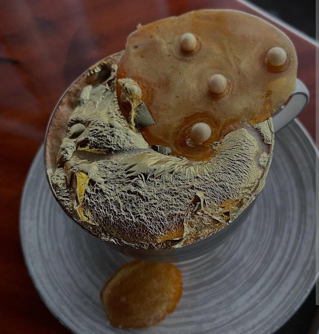 ಸಾಮಾನ್ಯವಾಗಿ ನಾವೆಲ್ಲರೂ ಕಾಫಿ ಡಿಕಾಕ್ಷನ್ ಗೆ ಒಂದಿಷ್ಟು ಹಾಲು, ಸಕ್ಕರೆ ಬೆರೆಸಿಕೊಂಡು ಕುಡಿಯುವುದು ಪದ್ಧತಿ.ಕಾಫಿ ಡೇಗಳಿಗೆ ಹೋಗುವಾಗ ಕೆಪುಚಿನೋ , ಬ್ಲಾಕ್ ಕಾಫಿ, ಕೋಲ್ಡ್ ಕಾಫಿ ಹೀಗೆ ವಿಭಿನ್ನ ರೀತಿಯ ಕಾಫಿಗಳನ್ನು ಟೇಸ್ಟ್ ಮಾಡುತ್ತೇವೆ.ಆದ್ರೆ ಇಲ್ಲಿ ಇರೋದು ಅಂತಿಂಥಾ ಕಾಫಿಯಲ್ಲ, 24K ಗೋಲ್ಡ್‌ ಚಿನ್ನದ ಕಾಫಿ.