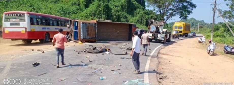 ನಿಯಂತ್ರಣ ತಪ್ಪಿ, ಲಾರಿ ಪಲ್ಟಿಯಾದ ಘಟನೆ ಮಾಣೆ