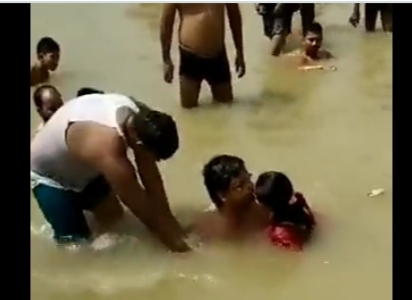 ಉತ್ತರ ಪ್ರದೇಶದ ಅಯೋಧ್ಯೆಯ ಸರಯೂ ನದಿಯಲ್ಲಿ ಸ್ನಾನ ಮಾಡುತ್ತಿದ್ದ ವೇಳೆ ಪತ್ನಿಗೆ ಪತಿ ಮಹಾಶಯ ಮುತ್ತು ಕೊಟ್ಟಿದ್ದೇನೆ. ಅಷ್ಟೇ ನೋಡಿ, ಮುತ್ತು ಕೊಟ್ಟಿದ್ದಕ್ಕೆ ಆ ಪತಿ ಮಹಾಶಯನನ್ನು ನಿಂದಿಸಿ ಥಳಿಸಿದ ಘಟನೆ ನಡೆದಿದೆ. ಇದೀಗ ಘಟನೆಯ ವಿಡಿಯೋ ಸಾಮಾಜಿಕ ಜಾಲತಾಣದಲ್ಲಿ ವೈರಲ್ ಆಗಿದೆ.