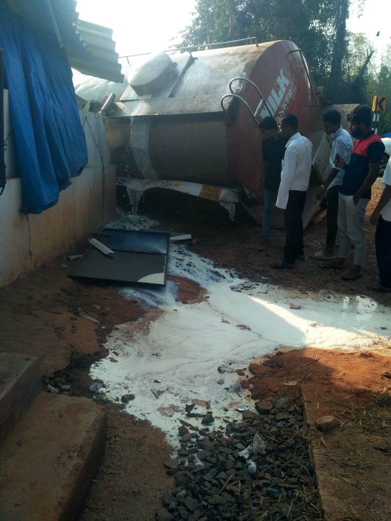 ಈ ಘಟನೆಯಿಂದ ಟ್ಯಾಂಕರ್ನಲ್ಲಿದ್ದ ಹಾಲು ರಸ್ತೆಯಲ್ಲಿ ಚೆಲ್ಲಿದೆ.