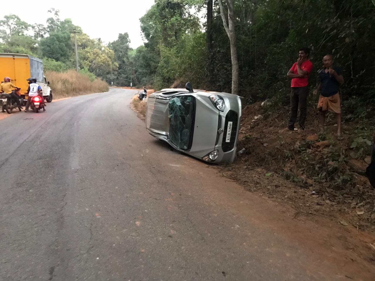 ಕಾರು ಅತಿಯಾದ ವೇಗದಲ್ಲಿ ಚಲಾಯಿಸುತಿದ್ದರಿಂದ ಈ ಘಟನೆ ಸಂಭವಿಸಿದೆ.ಅಲ್ಪ ಸ್ವಲ್ಪ ಗಾಯಗಳಾಗಿದ್ದು,ಚಾಲಕ ಯಾರೆಂಬುದು ತಿಳಿದು ಬಂದಿಲ್ಲ.