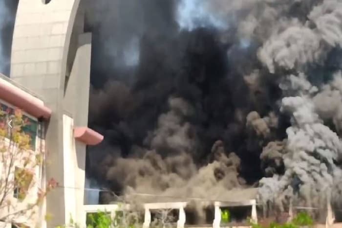 #WATCH | Madhya Pradesh | A massive fire breaks out at Vallabh Bhavan State Secretariat in Bhopal. Firefighting operations are underway. Details awaited. pic.twitter.com/QBto0QSVIy