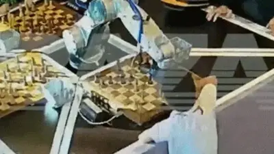 ರಷ್ಯಾ ದಲ್ಲಿ ಚೆಸ್ ಆಡುವ ರೋಬೋಟ್ನ ‘ಆಂಡ್ರಾಯ್ಡ್ ಗ್ಯಾಂಬಿಟ್’ ಆಟವಾಡುತ್ತಿದ್ದ ಏಳು ವರ್ಷದ ಮಗುವಿನ ಬೆರಳನ್ನು ಕಟ್ ಮಾಡಿದೆ. ಅತಿ ವೇಗವಾಗಿ ಆಟವಾಡಿದ ಬಾಲಕನ ಬೆರಳನ್ನು ರೋಬೋಟ್ ಮುರಿದಿದೆ ಎಂದು ಸಂಘಟನಾ ಸಮಿತಿ ಹೇಳಿದೆ.