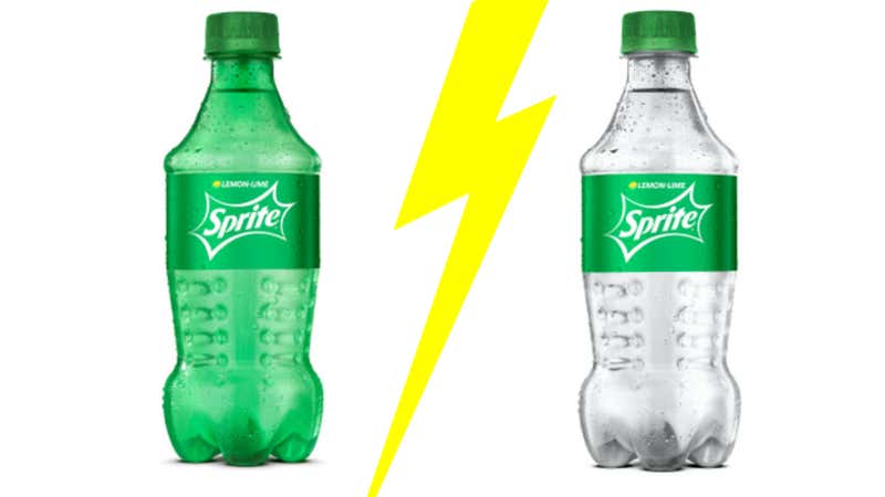 ಸ್ಪ್ರೈಟ್‌ನ ಹಸಿರು ಬಾಟಲಿಗಳ ಹಸಿರು ಪಾಲಿಥಿಲೀನ್ ಟೆರೆಫ್ಲಾಲೇಟ್ (ಪಿಇಟಿ) ಪ್ಯಾಕೇಜಿಂಗ್ ಅನ್ನು ಮರುಬಳಕೆ ಮಾಡಬಹುದಾದರೂ, ಅದನ್ನು ಇತರ ಸ್ಪಷ್ಟ ವಸ್ತುಗಳಿಂದ ಪ್ರತ್ಯೇಕಿಸಲಾಗಿದೆ. ಇದರಿಂದಾಗಿ ಹೊಸ ಬಾಟಲಿಗಳನ್ನು ತಯಾರಿಸಲು ಬಳಸುವ ವೇಳೆ ಇದು ಬಣ್ಣ ಕಳೆದುಕೊಳ್ಳುವುದಿಲ್ಲ. ಹೀಗಾಗಿ ವಸ್ತುವನ್ನು ಹೆಚ್ಚಾಗಿ ಬಟ್ಟೆ ಮತ್ತು ಕಾರ್ಪೆಟ್‌ಗಳಂತಹ ಏಕ ಬಳಕೆಯ ವಸ್ತುಗಳಾಗಿ ಪರಿವರ್ತಿಸಲಾಗುತ್ತದೆ. ಹೊಸ ಪಿಇಟಿ ಬಾಟಲಿಗಳಾಗಿ ಮರುಬಳಕೆ ಮಾಡಲಾಗುವುದಿಲ್ಲ. ಹಸಿರು ಬಣ್ಣದಿಂದ ಸ್ಪಷ್ಟ ತಿಳಿ ಬಣ್ಣಕ್ಕೆ ಬದಲಾಯಿಸುವುದು ಕಷ್ಟಕರ. ಹೀಗಾಗಿ ಕೋಕಾಕೋಲಾ ಸಂಸ್ಥೆ ಬಾಟಲಿಯ ಬಣ್ಣ ಬದಲಾಯಿಸಲು ಮುಂದಾಗಿದೆ.