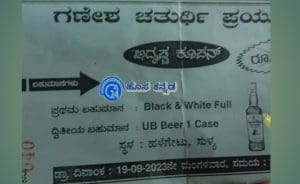 ಚೀಟಿಯಲ್ಲಿ ಗಣೇಶೋತ್ಸವ ಪ್ರಯುಕ್ತ ಎಂದು ಬರೆಯಲಾಗಿದ್ದು, ಪ್ರಥಮ ಬಹುಮಾನವಾಗಿ ಬ್ಲ್ಯಾಕ್ & ವೈಟ್ ಹಾಗೂ ದ್ವಿತೀಯ ಬಹುಮಾನವಾಗಿ ಒಂದು ಕೇಸ್ ಬಿಯರ್ ಎಂದು ಬರೆಯಲಾಗಿತ್ತು. ಡ್ರಾ ದಿನಾಂಕ 19/09/23 ಎಂದು ನಮೂದಿಸಿದ್ದು ಡ್ರಾ ಆಗಿದೆಯೇ ಹಾಗೂ ಅದರ ಕರ್ತೃ ಯಾರು ಎನ್ನುವ ಪ್ರಶ್ನೆ ಸಾರ್ವಜನಿಕ ವಲಯದಲ್ಲಿ ಮೂಡಿದೆ.