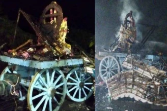 ರಥ ಎಳೆಯುತ್ತಿದ್ದ ಭಕ್ತಾಧಿಗಳಿಗೆ ವಿದ್ಯುತ್ ಸ್ಪರ್ಶಗೊಂಡು ಈ ಅನಾಹುತ ಸಂಭವಿಸಿದೆ. ಘಟನೆಯಲ್ಲಿ ಕೆಲವರು ಅಸ್ವಸ್ಥಗೊಂಡಿದ್ದು, ಗಾಯಗೊಂಡವರನ್ನು ಸ್ಥಳೀಯ ಆಸ್ಪತ್ರೆಗೆ ದಾಖಲಿಸಲಾಗಿದ್ದು, ಚಿಕಿತ್ಸೆ ನೀಡಲಾಗುತ್ತಿದೆ.