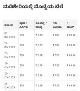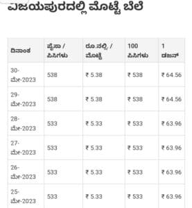 ಒಟ್ಟಿನಲ್ಲಿ ಉತ್ಪಾದನೆಯಲ್ಲಿ ಇಳಿಕೆಯಾದ ಪರಿಣಾಮ ಮೊಟ್ಟೆಗಳ ದರ ಏರಿಕೆ ಕಂಡಿದೆ.