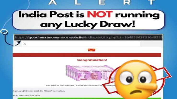 ವಿವಿಧ ಸಾಮಾಜಿಕ ಮಾಧ್ಯಮ ಪ್ಲಾಟ್ಫಾರ್ಮ್ಗಳಲ್ಲಿ ಲಿಂಕ್ ಅನ್ನು ಹಂಚಿಕೊಳ್ಳುವ ಮೂಲಕ, ಲಕ್ಕಿ ಡ್ರಾವನ್ನು ಇಂಡಿಯಾ ಪೋಸ್ಟ್ ಪ್ರಾರಂಭಿಸಿದೆ ಎಂಬ ಮೆಸೆಜ್ಗಳು ವಾಟ್ಸ್ಆ್ಯಪ್, ಫೇಸ್ಬುಕ್ ಮುಂತಾದ ಕಡೆ ವೈರಲ್ ಆಗುತ್ತಿದೆ. ಮೆಸೆಜ್ ಕ್ಲಿಕ್ ಮಾಡಿದರೆ ಇದರಲ್ಲಿ ಕೆಲವು ಪ್ರಶ್ನೆಗಳಿಗೆ ಉತ್ತರಿಸುವ ಮೂಲಕ ಬಹುಮಾನವನ್ನು ಸುಲಭವಾಗಿ ಗೆಲ್ಲಬಹುದು ಎಂದು ಆಸೆ ತೋರಿಸಿ ವಂಚನೆ ಎಸಗಲಾಗುತ್ತಿದೆ.